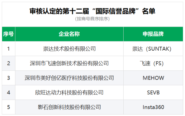 第十二届国际信誉品牌暨第二十三届“深圳(湾区)知名品牌审核及评价结果公示