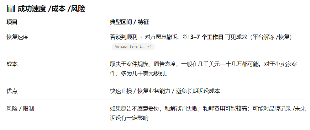 和解达成后要将法院撤诉 / retraction 的文件提交给平台(如 Amazon),以恢复 listing / 解冻资产。