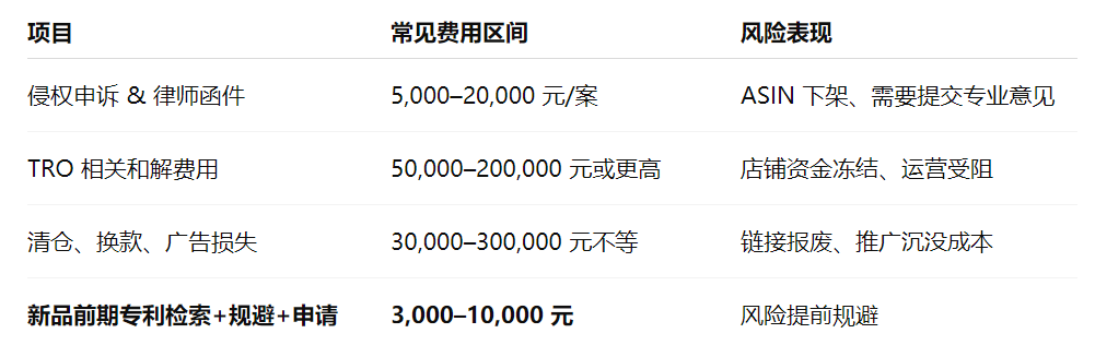 在当前跨境电商竞争日趋激烈、平台监管力度不断提高的背景下,企业在进行新品规划时,预算分配的合理性直接决定了产品能否顺利上市、稳定运营及长期发展。 一、新品预算中普遍存在的结构性问题 企业在制定新品预算时通常优先考虑以下项目: 研发与设计成本 打样、模具及生产成本 备货及物流成本 推广、广告与达人营销成本 这些支出确实直接影响产品上市速度和市场表现,但也普遍存在一个盲区: 缺乏对专利的前期投入,往往会导致: 上线后因外观或结构问题被投诉 广告投入尚未收回即遭到下架 店铺因侵权升级为法律程序,甚至触发 TRO 大规模库存无法销售,形成沉没成本 这类风险一旦发生,其经济损失远高于前期的专利费用。 二、为何说“专利费用是最能节省成本的一项”? (1)前期投入低,后期可避免高额损失 以跨境行业常见的风险成本为例: 一次专业的专利检索和规避设计费用,仅占潜在损失的数百分之一。 (2)专利属于“防御性资产”,可显著降低运营不确定性 合理的专利布局具备以下价值: 提升新品上架的安全性 有效减少同行恶意投诉 为广告投放、达人推广提供法律保障 在必要时间可通过专利号实现平台申诉和维权 在整体新品周期中,专利不仅是“成本”,更是稳定运营的“保护资产”。 (3)专利费用的投入产出比(ROI)高于大部分营销支出 营销预算通常用于获取曝光与转化,但其效果具有不确定性; 从 ROI 角度看,专利费用是少数能够通过减少损失、提升安全性而产生直接正向回报的预算项。 三、不同阶段的知识产权投入建议 阶段 1:方案设计阶段(投入最少,保护效果最佳) 重点: 竞品专利检索 结构/外观风险点识别 可行的规避设计方案 此阶段成本最低,但能最大程度减少后期修改成本。 阶段 2:样品定型阶段 重点: 外观专利申请 关键结构专利申请 建立基本的防御性 IP 布局 阶段 3:上架准备阶段 重点: 侵权自查 对比分析报告 目标市场合规评估 确保 Listing 上线风险最低化。 阶段 4:新品起量阶段(广告投入期) 重点: 补充必要的防御性专利 提前准备申诉材料(如有需要) 广告投入越大,知识产权的安全性越重要。 对于企业而言,避免损失就是最高形式的收益。 在新品预算体系中,将专利纳入核心预算模块,是确保新品稳定发展的必要动作。