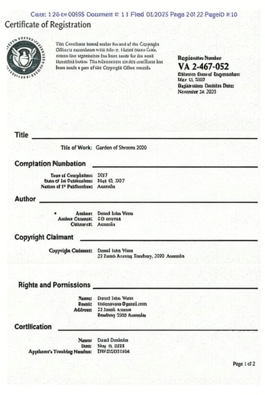 案件信息 原告品牌:Daniel John Watts 原告公司:Daniel John Watts 案件编号:26-cv-595 起诉类型:版权 原告律所:Keith 起诉时间:2026/1/20 品牌介绍 原告 Daniel John Watts 是澳大利亚艺术家,在海边长大,对自然与生命有着长期的感受积累。他的创作并不追求对外形的简单再现,而是通过绘画与影像,传达对象所蕴含的情绪与精神特质。 自幼起,Daniel John Watts 便投入于绘画、插画和素描创作,并持续至求学阶段。此后,他经历过较长时间的疾病与康复,这段经历让艺术在他的人生中具有了更深的意义——创作不仅是一种表达方式,更成为他日常生活和精神世界的重要组成部分。 版权信息 本案涉及的版权信息如下,未经授权以下图片及原告官网的其他作品都不能擅自使用,请卖家们仔细排查,避免侵权! 产品示例 免责声明:图片来源于公开渠道,仅供参考,如有侵权请联系删除。 联系我们 如您收到涉及 TRO 的相关通知,且店铺资金出现受限情况,建议尽早评估处理路径。我们可免费协助进行和解金额区间预估,并提供对应的处理思路与风险提示,帮助您更清晰地判断下一步方向。