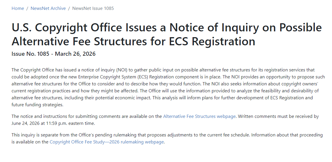 最近,美国版权局连续发布多项新动态。 一、最新公告 美国版权局在2026年3月26日发布最新公告,就未来ECS版权登记系统可能采用的替代收费结构公开征求意见。 这说明,美国版权登记未来调整的,可能不只是费用高低,还有收费方式本身。对于有批量登记需求的企业来说,这一变化需要重点留意。 二、现行官费也可能调整 在此之前,美国版权局还于2026年3月19日发布公告,就现行版权官费表调整公开征求意见。 对企业来说,这意味着如果本身就有美国版权登记计划,尤其是涉及图片、包装、平面设计、宣传素材等作品,建议尽早评估布局节奏。 三、二维作品新增团体登记选项 美国版权局还在2026年2月17日推出了新的GR2D二维美术作品团体登记选项。 这一变化对插画、平面设计、品牌视觉、包装设计等业务来说更实用,也让批量版权布局更方便。 四、版权小额索赔机制也在持续完善 另外,美国版权局在2026年2月13日发布了版权小额索赔委员会(CCB)三年评估报告。 这也说明,美国版权制度的变化不只是登记端,后续维权路径也在逐步完善。 五、对跨境卖家来说,要重视什么? 从近期动态来看,美国版权局释放出的信号很明确: 对于跨境企业来说,产品图片、包装设计、详情页内容、品牌视觉、宣传素材等,只要属于原创内容,都建议尽早评估是否需要做版权布局。早一步确权,后续遇到投诉、申诉或维权时,往往会更主动。 以上判断是基于美国版权局近期公告作出的实务分析。 如果你正在关注美国版权登记、跨境平台版权投诉、侵权申诉,或者不确定自己的图片、包装、页面内容是否需要提前做版权保护,建议尽早评估。 *如需了解美国版权登记流程、费用变化影响、适合登记的作品类型,欢迎联系我们,我们可以结合你的实际业务,帮你做更有针对性的分析。